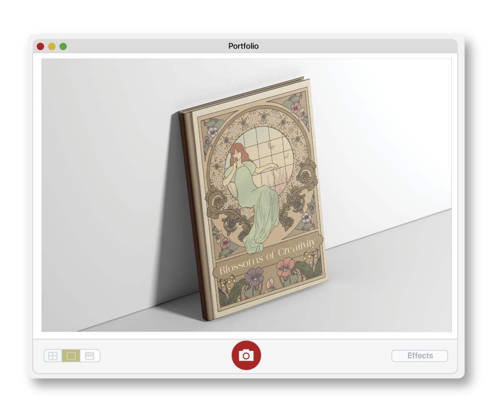 This portfolio book presents a journey through a garden of art and design. With each turn of the page, readers feel as though they’re wandering through an enchanting garden, pausing to appreciate each unique piece, as if admiring a blooming flower, intricate leaf, or hidden path. This immersive experience invites viewers to lose themselves in a world of colors, textures, and forms, leaving them with a sense of calm and wonder, as if they have truly visited a garden brimming with inspiration.