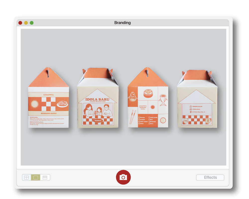 For a college project, I redesigned the packaging for a food product called "Idola Baru" Siomay and Batagor, which uniquely uses tuna as the main ingredient. The redesigned packaging is centered around three main themes: eating anywhere, simulating the experience of enjoying the food at various locations. These include dining in-store, savoring it at home, or enjoying it in public spaces, such as during a picnic. The versatility and portability of the packaging reflect these themes, making it both convenient and appealing for different eating scenarios.