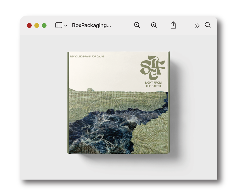 In this project, I redesigned the packaging for Sight From The Earth, an eco-fashion brand, with a focus on sustainability. The design concept revolves around creating a collage of various denim patterns, blending them into landscapes reminiscent of mountain and beach scenes. By reusing and repurposing denim textures, the design symbolizes the brand’s eco-conscious values, celebrating the beauty of diversity in nature. The collage technique evokes a sense of interconnectedness, reflecting the harmony between fashion, culture, and the environment, and further enhancing the brand's message of sustainability through artistic storytelling.