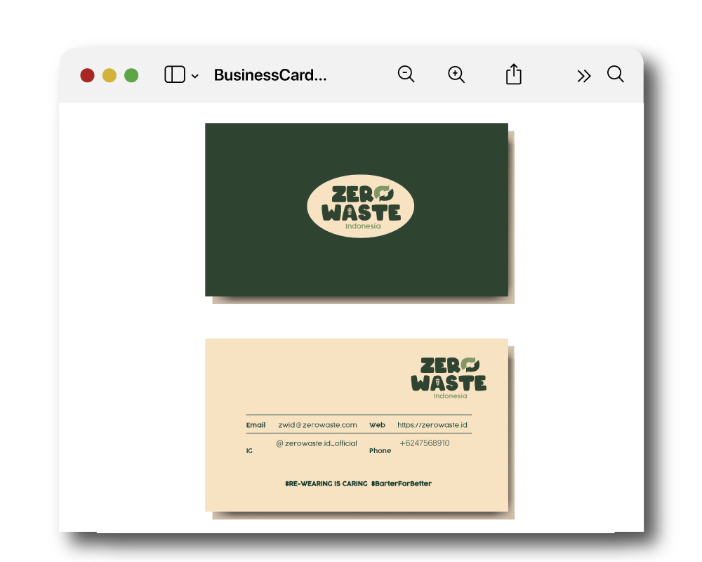 This rebranding project focuses on redefining the visual identity of Zero Waste Indonesia to create a cohesive, impactful, and easily recognizable brand that reflects the organization's mission of environmental sustainability. The new design emphasizes simplicity and a sense of freshness, representing a clean and waste-free environment. The logo has been modernized with a minimalist symbol and a green and earthy color palette to evoke a connection to nature and sustainability